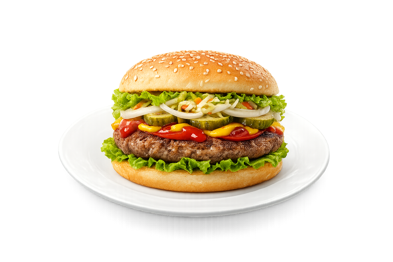 (hambi hus, saláta, parad, ubi, hagyma, mustar, ketchup)