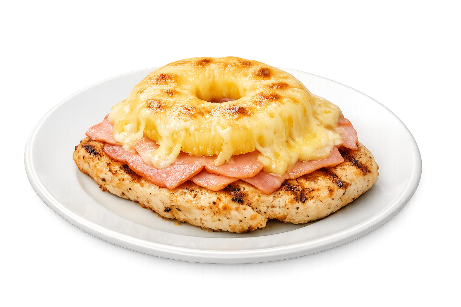 (roston csirke, sonkával, ananásszal, sajttal rakva, választható körettel)
